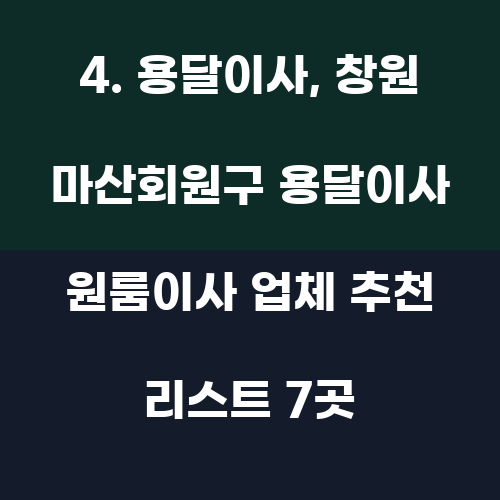이제 창원 마산회원구에서 추천할 만한 용달이사 업체를 소개하겠습니다. 이들 업체는 각각의 특성과 장점을 가지고 있어 여러분의 이사를 더욱 수월하게 도와줄 것입니다.